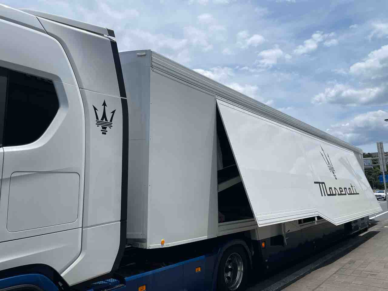 マセラティロゴが入ったトラックに乗り